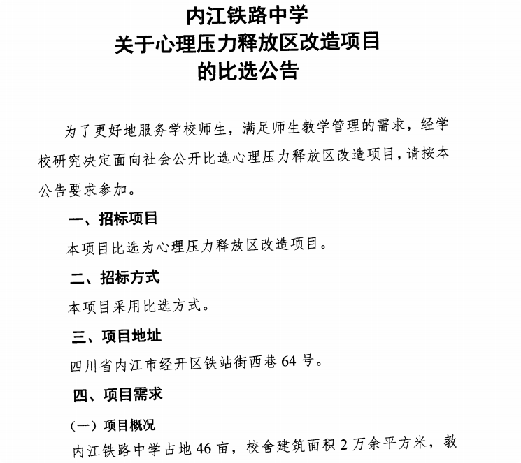 内江铁路中学关于心理压力释放区改造项目的比选公告
