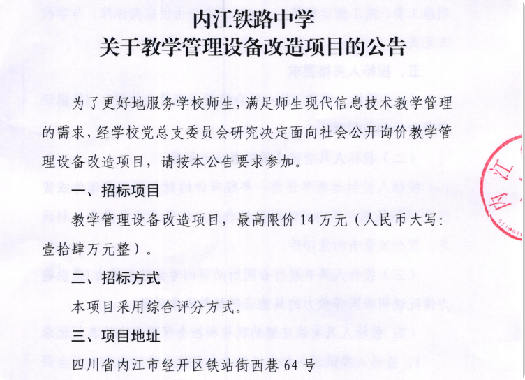 内江铁路中学关于教学管理设备改造项目的公告.rar
